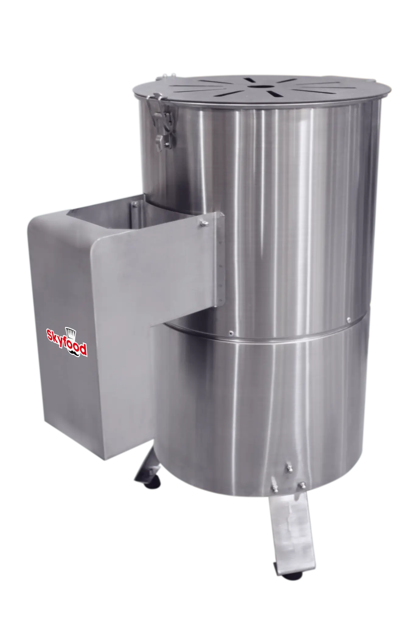 Foster innovation with the Skyfood Equipment EL-10 Potato Peeler. This electric, table-style peeler is designed to streamline your restaurant's potato preparation process. With a 22 lb. capacity and an approximate production rate of 350 lbs/hour, this peeler can handle high-volume demands with ease. The 5-minute timer ensures consistent results, while the large protected exit chute allows for efficient peeling without the risk of clogs or jams. The stainless steel cover, equipped with a safety switch, provides durability and peace of mind. The EL-10's stainless steel body and 1/2 HP motor ensure long-lasting performance in a busy commercial kitchen. Whether you're peeling potatoes for fries, mashed potatoes, or any other dish, this potato peeler from Skyfood Equipment is a reliable and efficient choice. Upgrade your restaurant's potato peeling process with the EL-10 today.