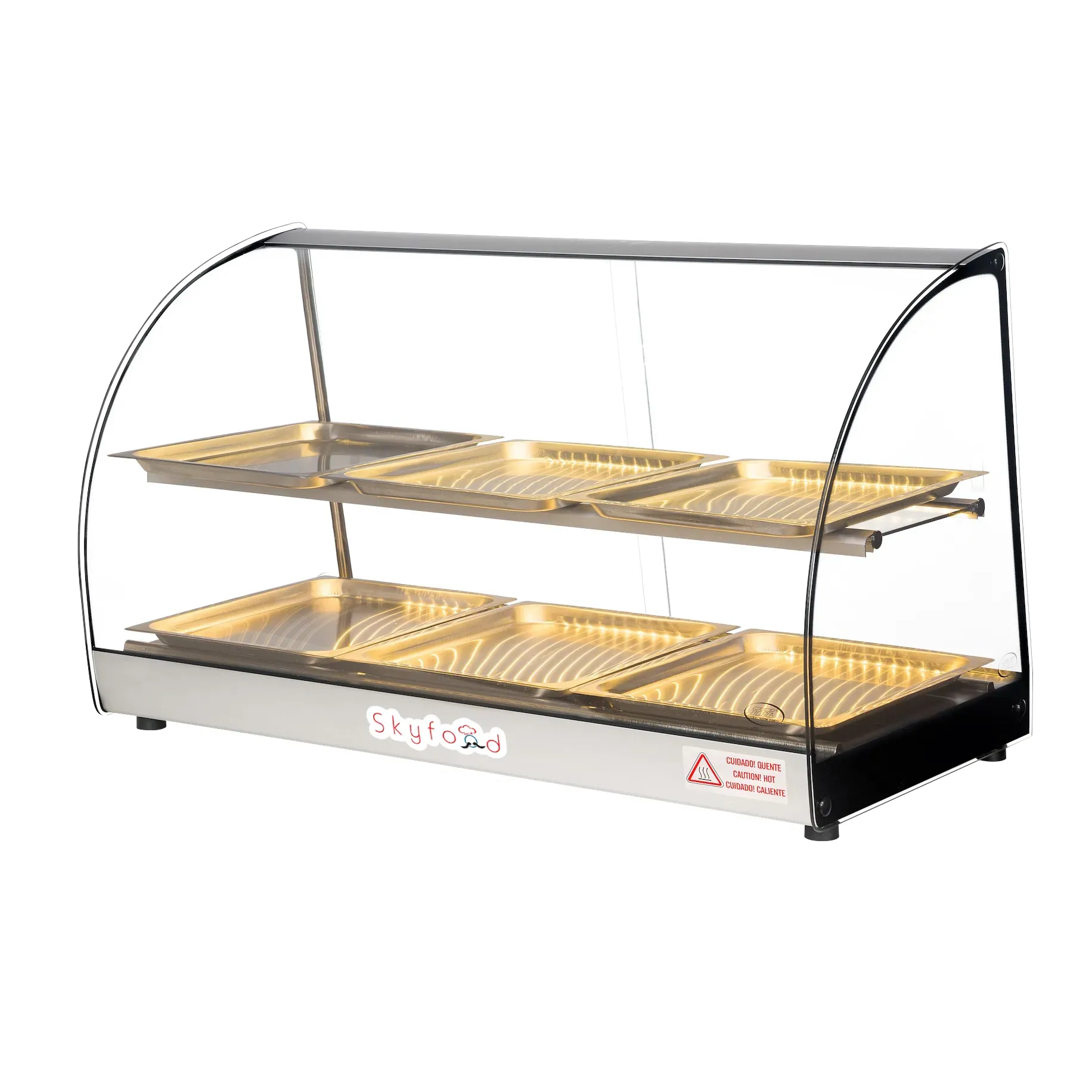 Optimize functionality with the Skyfood Equipment FWD2-33-6P Display Case, Heated Deli, Countertop. This sleek and efficient food warmer display case is designed to enhance your commercial restaurant operations. The LED lighting illuminates your food, making it even more enticing to customers. The thermostat-controlled 304 stainless steel tubular heating element ensures precise temperature control, keeping your food warm and fresh. The two shelves provide ample space for displaying your culinary creations, with three stainless steel pans on each shelf. This display case is UL-Sanitation certified, guaranteeing its safety and reliability. Upgrade your restaurant's food presentation and keep your dishes at the perfect temperature with the Skyfood Equipment FWD2-33-6P Display Case, Heated Deli, Countertop.