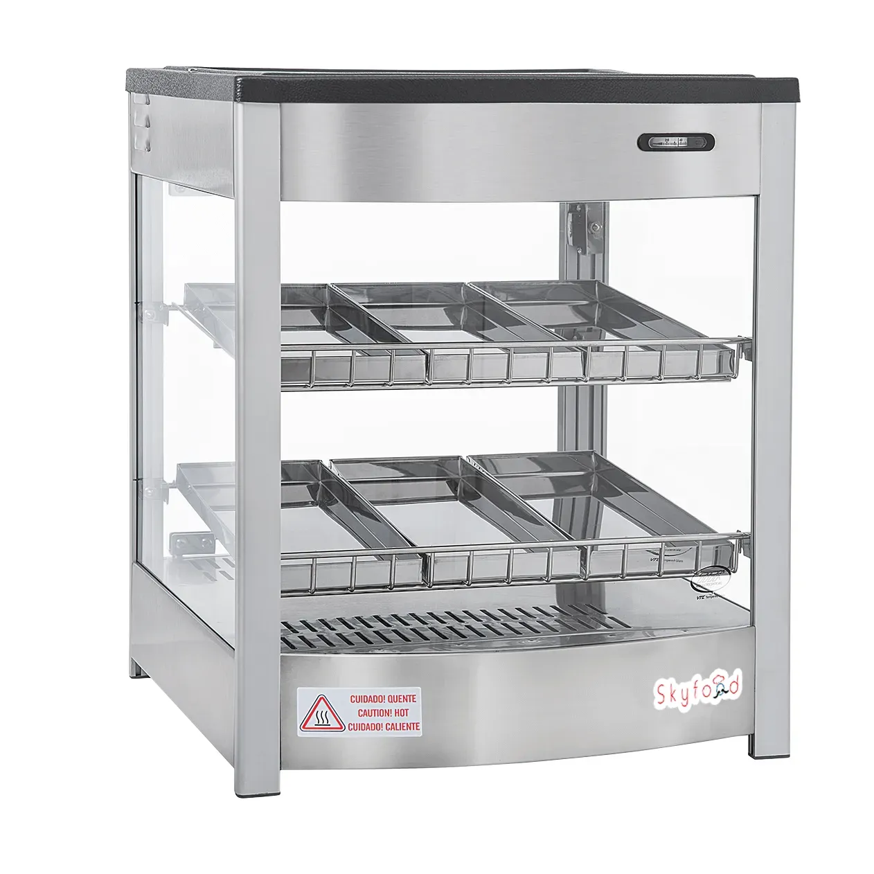 Enhance reliability with the Skyfood Equipment FWD2S6P Display Case, Heated Deli, Countertop. This steam line food warmer display case is designed to meet the demands of a commercial restaurant setting. With its adjustable nickel plated shelves and stainless steel pans, you can easily showcase and keep your food warm and fresh. The tempered straight front glass, tempered glass sides, and hinged rear door provide easy access and visibility for your customers. The LED lighting adds an attractive display to your food items. The thermostatically controlled 304 stainless steel tubular heating element ensures consistent and precise temperature control. The aluminum frame and stainless steel base make this display case durable and easy to clean. With 712 watts of power, this display case is perfect for keeping your deli items, pastries, and other food items warm and ready to serve.