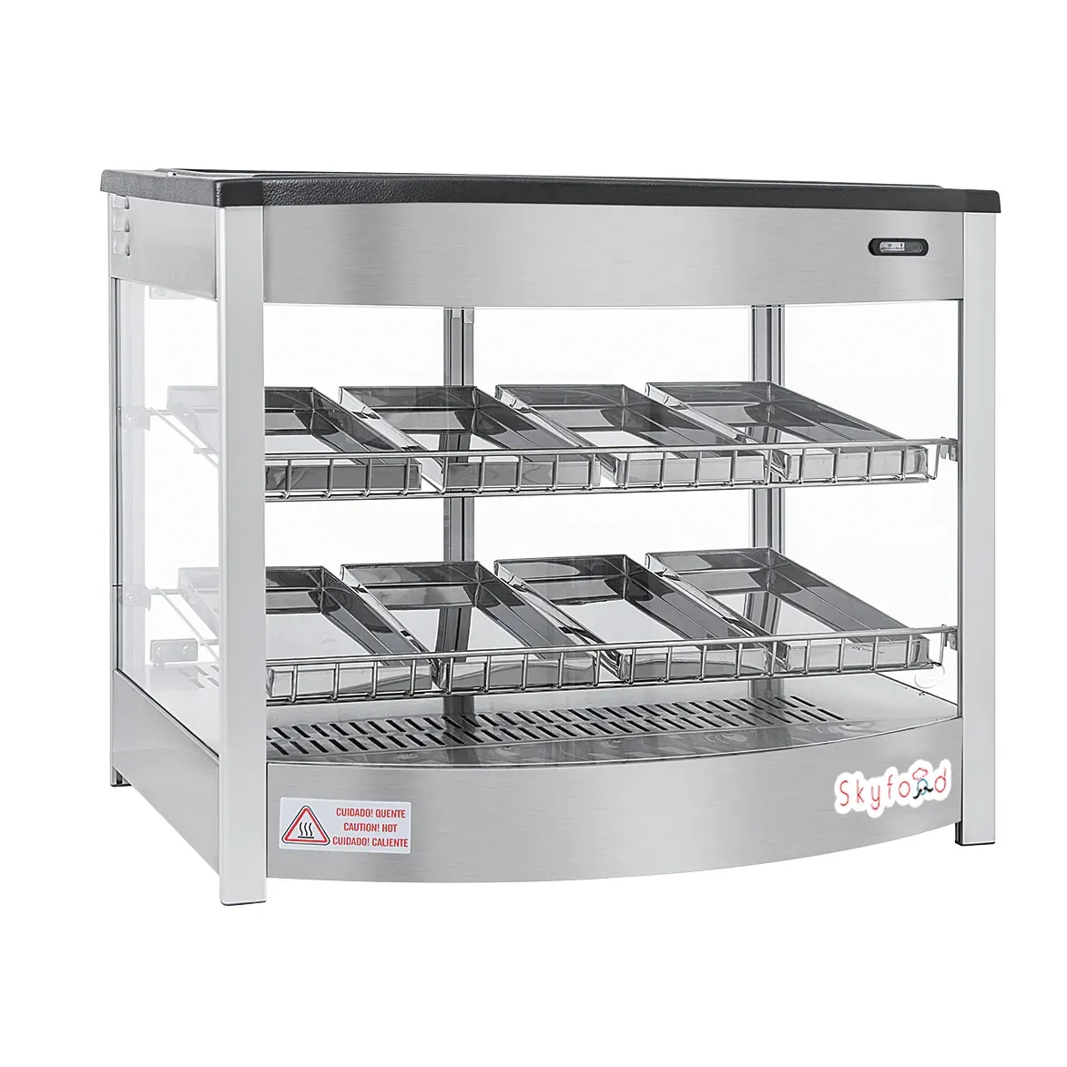 Ensure efficiency with the Skyfood Equipment FWD2S8P Display Case, Heated Deli, Countertop. This steam line food warmer display case is designed to meet the demands of a commercial restaurant setting. With its adjustable nickel plated shelves and stainless steel pans, you can easily showcase and keep your food warm and fresh. The tempered straight front glass, tempered glass sides, and hinged rear doors provide easy access and visibility for your customers. The LED lighting enhances the presentation of your food, while the thermostatically controlled 304 stainless steel tubular heating element ensures precise temperature control. The aluminum frame and stainless steel base make this display case durable and easy to clean. Whether you're displaying deli items, hot snacks, or desserts, the Skyfood Equipment FWD2S8P is the perfect addition to your restaurant.