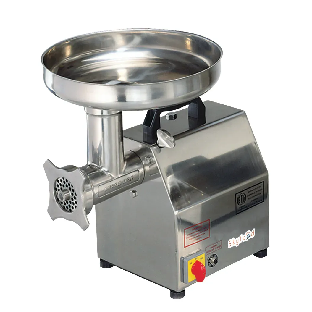 Optimize performance with the Skyfood Equipment SMG12 Electric Meat Grinder. Designed for commercial restaurant use, this countertop grinder is a powerful addition to any kitchen. With a stainless steel grinding head, pan, and housing, this grinder is built to withstand the demands of a busy restaurant environment. The forward and reverse switch allows for easy operation and ensures efficient grinding. Producing approximately 260 lbs/hour, this grinder can handle large quantities of meat with ease. The 1 HP motor provides reliable power, while the 115v/60/1-ph electrical configuration ensures compatibility with standard restaurant outlets. Certified by cETLus and ETL-Sanitation, this grinder meets the highest safety and sanitation standards. Whether you're grinding meat for burgers, sausages, or other dishes, the Skyfood Equipment SMG12 Electric Meat Grinder is the perfect choice for achieving consistent and high-quality results.