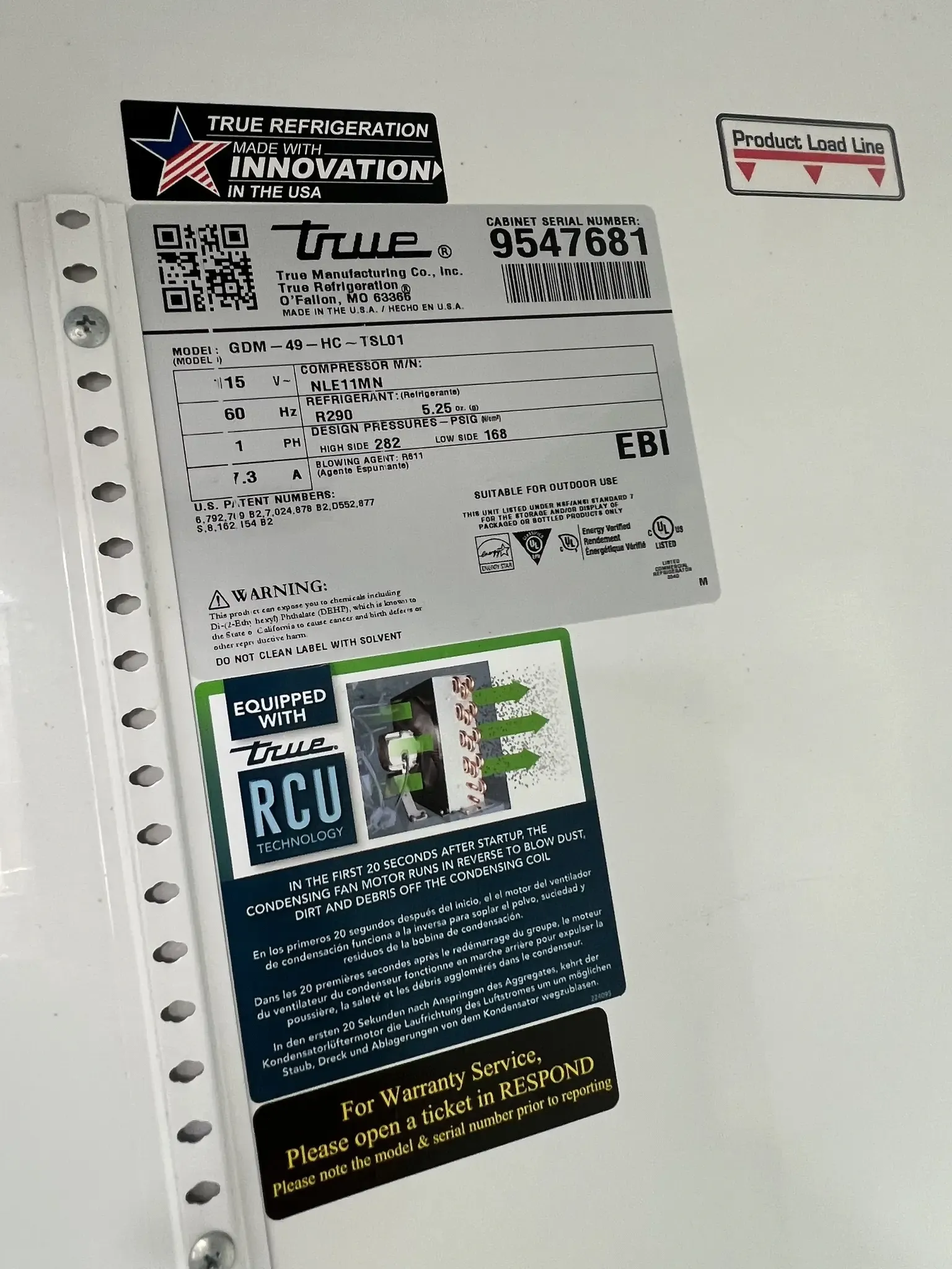 The True GDM-49-HC~TSL01 delivers superior refrigeration performance with eco-friendly R290 refrigerant and energy-efficient components. Featuring two crystal-clear glass swing doors, LED interior lighting, and a spacious design, this merchandiser keeps beverages and packaged goods perfectly chilled and attractively displayed for maximum sales impact.