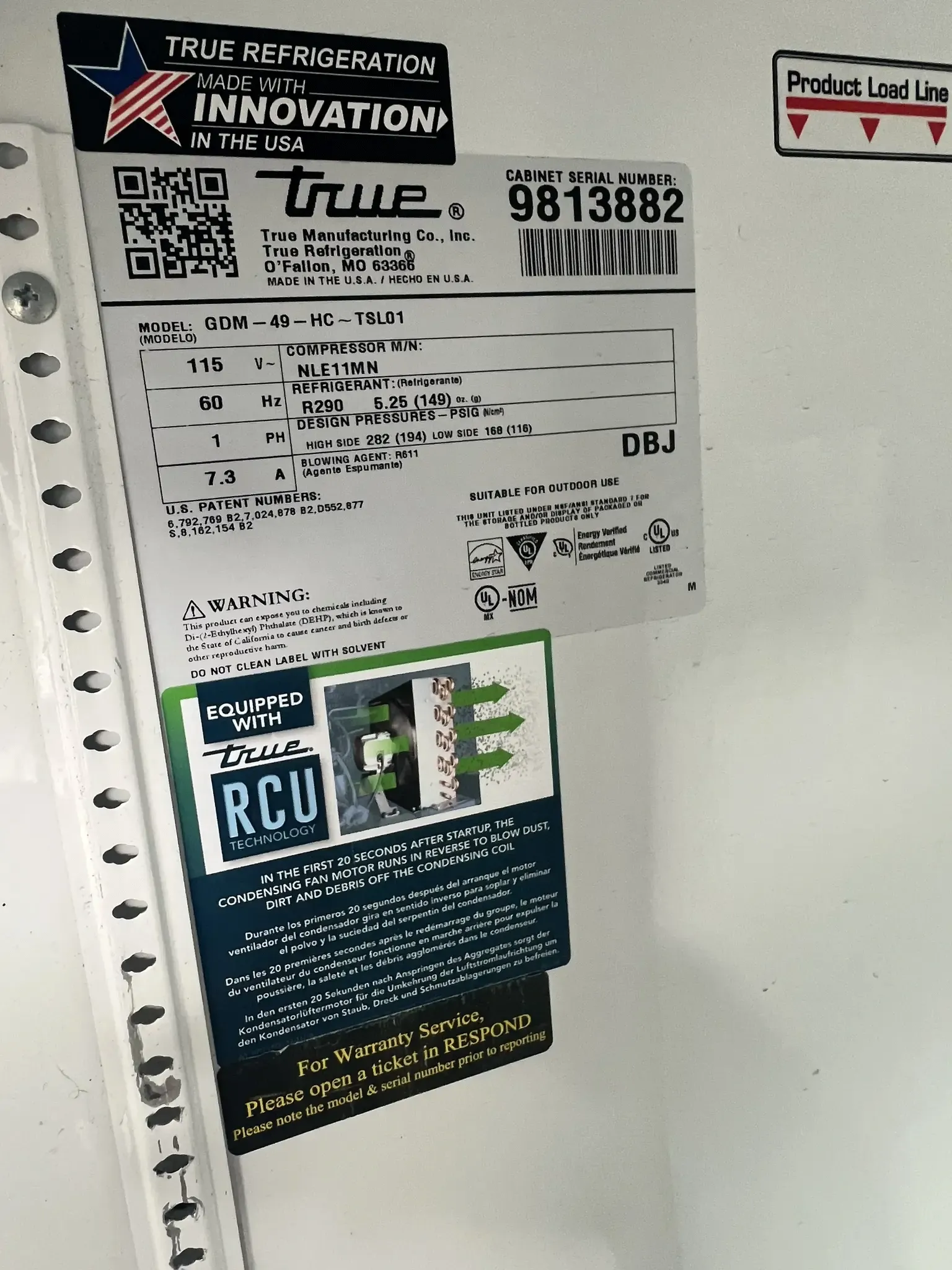 The True GDM-49-HC~TSL01 delivers superior refrigeration performance with eco-friendly R290 refrigerant and energy-efficient components. Featuring two crystal-clear glass swing doors, LED interior lighting, and a spacious design, this merchandiser keeps beverages and packaged goods perfectly chilled and attractively displayed for maximum sales impact.