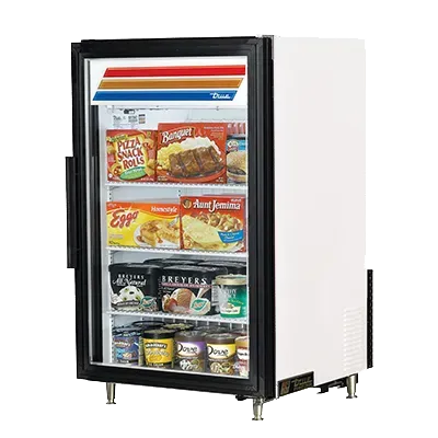 Introducing the True Manufacturing GDM-07F-HC~TSL01 Freezer Merchandiser, designed to dominate the culinary world. This countertop freezer is a must-have for any commercial restaurant seeking to enhance its food storage capabilities. With its sleek True standard look version 01, this freezer exudes authenticity and reliability. The triple-pane thermal glass hinged door not only provides a clear view of the contents but also ensures optimal insulation to maintain a temperature as low as -10F. The LED interior lights illuminate the white interior with a stainless steel floor, making it easy to locate and access items. The powder-coated steel exterior adds durability, while the 2-1/2" legs provide stability. Powered by a 1/4 HP compressor and utilizing R290 Hydrocarbon refrigerant, this freezer is energy-efficient and environmentally friendly. Made in the USA and certified by cULus, UL EPH Classified, and CE, the True Manufacturing GDM-07F-HC~TSL01 Freezer Merchandiser is the perfect addition to any commercial kitchen, ensuring your culinary creations stay fresh and accessible.