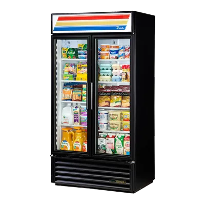 Mobilize your kitchen with the True Manufacturing GDM-35-HC~TSL01 Refrigerator Merchandiser. This two-section refrigerated merchandiser is perfect for commercial restaurant use. With its True standard look version 01, it combines functionality and style. The merchandiser features (8) shelves, providing ample space to showcase your products. The (2) Low-E thermal glass hinged doors not only offer a clear view of the contents but also help to conserve energy. The LED interior lights illuminate the interior, making it easy to locate items. The powder-coated steel exterior ensures durability, while the white interior with a stainless steel floor adds a touch of elegance. The GDM-35-HC~TSL01 uses R290 Hydrocarbon refrigerant, which is environmentally friendly. With a 1/2 HP compressor and 115v/60/1-ph power supply, this merchandiser is efficient and reliable. It is cULus, UL EPH Classified, and CE certified, guaranteeing its quality. Made in the USA by True Manufacturing, this refrigerated merchandiser is a must-have for any commercial restaurant.