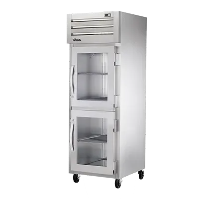 Cook with precision using the True Manufacturing STA1R-2HG-HC Refrigerator, Reach-In. This top-of-the-line commercial refrigerator is designed to meet the demanding needs of a busy restaurant kitchen. With its sleek stainless steel front and sides, this refrigerator not only looks professional but is also built to withstand the rigors of a commercial environment. The two glass half doors with locks provide easy access to your ingredients while keeping them secure. The digital temperature control ensures that your food stays at the perfect temperature for maximum freshness. Inside, you'll find three chrome shelves and LED interior lights, making it easy to organize and locate your items. The aluminum interior sides and walls, along with the stainless floor and ceiling, are easy to clean and maintain. With its 5" castors, this refrigerator is also easy to move around your kitchen as needed. Trust True Manufacturing for all your commercial refrigeration needs.