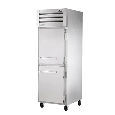 Fuel your restaurant's success with the True Manufacturing STA1R-2HS-HC Refrigerator, Reach-In. This top-of-the-line refrigeration unit is designed to meet the demanding needs of commercial restaurants. With its sleek stainless steel front and sides, it not only looks professional but is also built to withstand the rigors of a busy kitchen. The two stainless steel half doors come with locks and cam-lift hinges, ensuring the contents are secure and easily accessible. The digital temperature control allows for precise temperature management, while the LED interior lights provide excellent visibility. The three chrome shelves offer ample storage space for your ingredients and products. Made in the USA and ENERGY STAR certified, this refrigerator is not only reliable but also energy-efficient. Upgrade your restaurant's refrigeration capabilities with the True Manufacturing STA1R-2HS-HC Refrigerator, Reach-In.