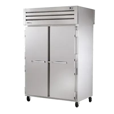 Fuel your passion for cooking with the True Manufacturing STA2HPT-2S-2S Heated Cabinet, Pass-Thru. This two-section cabinet is designed to meet the demands of a busy commercial restaurant kitchen. With two stainless steel doors, both front and rear, equipped with locks and cam-lift hinges, you can easily access your stored items while ensuring their security. The digital temperature control allows you to precisely adjust the heat to keep your food at the perfect serving temperature. Inside, you'll find six chrome shelves, providing ample space for your culinary creations. The stainless steel front and sides not only give the cabinet a sleek and professional look but also make it durable and easy to clean. The aluminum interior further enhances its durability. With 5" castors, this cabinet is easy to move around your kitchen. Made in the USA and cULus and UL EPH Classified, you can trust in the quality and reliability of True Manufacturing. Upgrade your restaurant kitchen with the True Manufacturing STA2HPT-2S-2S Heated Cabinet, Pass-Thru.