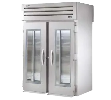 Elevate your culinary experience with the True Manufacturing STG2RRT-2G-2S Refrigerator, Roll-Thru. This top-of-the-line refrigerator is designed to meet the demanding needs of commercial restaurants. With its two-section design, it offers ample storage space for your ingredients and prepared dishes. The two glass doors in the front and two stainless steel doors in the rear provide easy access and allow for efficient workflow in busy kitchen environments. Equipped with locks and cam-lift hinges, this refrigerator ensures the safety and security of your valuable supplies. The digital control allows for precise temperature management, while the incandescent interior lighting illuminates the contents for easy visibility. The stainless steel ramps, front, and aluminum sides and interior not only enhance durability but also give a sleek and professional look to your kitchen. Made in the USA, this True Manufacturing refrigerator is cULus and UL EPH Classified, guaranteeing its quality and reliability. Accommodating 27"W x 29"D x 66"H carts (not included), this roll-thru refrigerator is a must-have for any commercial restaurant looking to optimize their storage and workflow efficiency.