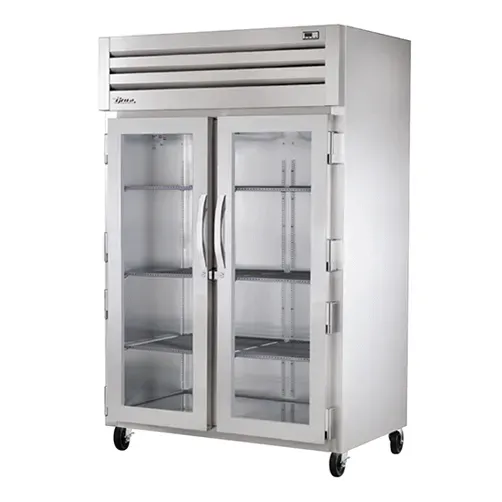 Maximize your food service potential with the True Manufacturing STR2R-2G-HC Refrigerator, Reach-In. This top-of-the-line refrigerator is designed to meet the demands of a busy commercial restaurant. With its two glass doors, you can easily see and access your ingredients without opening the doors, helping to maintain the desired temperature inside. The cam-lift hinges ensure smooth and effortless door operation, while the digital temperature control allows you to easily adjust and monitor the temperature to keep your food fresh. The LED interior lights provide excellent visibility, making it easy to find what you need. Made in the USA with stainless steel front, sides, and interior, this refrigerator is built to last. It also features 5" castors for easy mobility and uses R290 Hydrocarbon refrigerant, which is environmentally friendly. With its ENERGY STAR certification, this True Manufacturing refrigerator not only saves you money on energy costs but also helps reduce your carbon footprint. Elevate your restaurant's efficiency and performance with the True Manufacturing STR2R-2G-HC Refrigerator, Reach-In.