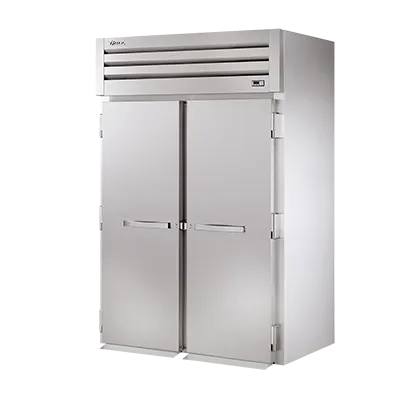 Equip your commercial kitchen with the True Manufacturing STR2RRI89-2S Refrigerator, Roll-In. This top-of-the-line refrigerator is designed to meet the demands of a busy restaurant environment. With its two-section design and stainless steel construction, it offers durability and ample storage space for your ingredients and prepared dishes. The stainless steel doors come with locks and cam-lift hinges, ensuring the safety and security of your food items. The digital temperature control allows you to easily adjust and monitor the internal temperature, while the incandescent interior lighting provides clear visibility of the contents. The stainless steel ramp makes it easy to roll in carts, accommodating 27"W x 29"D x 72"H carts. Made in the USA, this True Manufacturing refrigerator is cULus and UL EPH Classified, guaranteeing its quality and compliance with industry standards. Upgrade your kitchen with this reliable and efficient roll-in refrigerator.