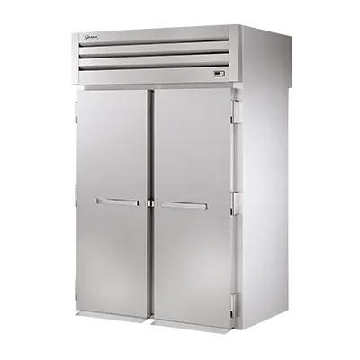 Elevate your culinary experience with the True Manufacturing STR2RRT89-2S-2S Refrigerator, Roll-Thru. This top-of-the-line refrigerator is designed to meet the demanding needs of commercial restaurants. With its two-section design and stainless steel doors, front and rear, this refrigerator offers ample storage space and ensures durability. The cam-lift hinges and locks provide added security, while the digital temperature control allows for precise temperature management. The incandescent interior lighting illuminates the contents, making it easy to find what you need. The stainless steel ramps, front, sides, and interior not only enhance the refrigerator's aesthetics but also make it easy to clean and maintain. Made in the USA, this refrigerator is built to last and is UL EPH Classified. It accommodates 27"W x 29"D x 72"H carts (not included), making it perfect for busy commercial kitchens. Upgrade your restaurant's refrigeration capabilities with the True Manufacturing STR2RRT89-2S-2S Refrigerator, Roll-Thru.
