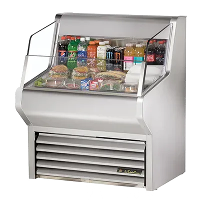 Boost your restaurant's performance with the True Manufacturing THAC-36-S-LD Merchandiser, Open Refrigerated Display. This horizontal air curtain merchandiser is designed to enhance your restaurant's efficiency and attract customers with its sleek stainless steel exterior and interior. The three-level tiered stainless steel floor provides ample space to showcase a variety of products, while the LED interior lighting illuminates them for maximum visibility. With self-contained refrigeration and a 3/8 HP compressor, this merchandiser ensures that your food and beverages stay at the perfect temperature. The leg levelers allow for easy installation and stability on any surface. Made in the USA and UL EPH Classified, this True Manufacturing merchandiser is a reliable and high-quality addition to your restaurant. Don't miss out on the opportunity to boost your sales and impress your customers with the THAC-36-S-LD Merchandiser, Open Refrigerated Display.