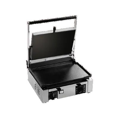 Efficiency Meets Culinary Mastery with the Univex PPRESS1.5F Sandwich/Panini Grill. This electric countertop grill is a must-have for any commercial restaurant. With its manual controls and adjustable temperature up to 570F, you have complete control over your cooking. The 13.98" x 10.04" cooking surface provides ample space to grill multiple sandwiches or paninis at once, saving you time and increasing productivity. The smooth cast iron plates ensure even heat distribution, resulting in perfectly grilled sandwiches every time. The standard hinged upper grill allows for easy access and quick cleaning. The built-in timer ensures precise cooking, while the stainless steel exterior adds durability and a sleek look to your kitchen. Included with the grill is a scraping brush for easy maintenance. Trust Univex, a reputable vendor in the industry, to deliver a high-quality product that will elevate your restaurant's sandwich game.