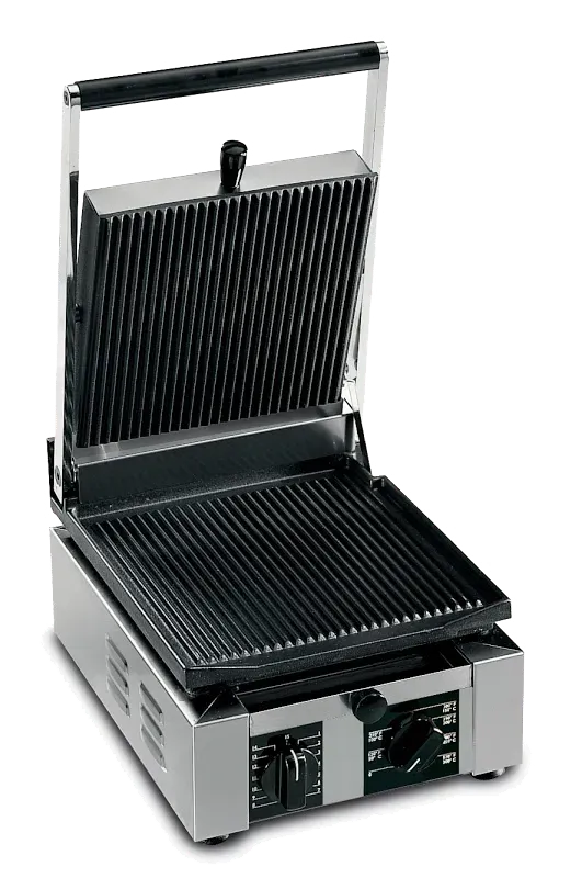 Create a Seamless Culinary Experience with the Univex PPress1RF Panini Press. This single cast iron ribbed bottom flat top panini press is designed to elevate your restaurant's sandwich game. With its durable construction and efficient heating capabilities, this panini press ensures consistent and delicious results every time. Its ribbed bottom creates beautiful grill marks on your sandwiches, adding a touch of visual appeal to your dishes. Whether you're serving up classic paninis or experimenting with new sandwich creations, this panini press is a must-have tool in any professional kitchen. Elevate your restaurant's sandwich offerings and impress your customers with the Univex PPress1RF Panini Press.