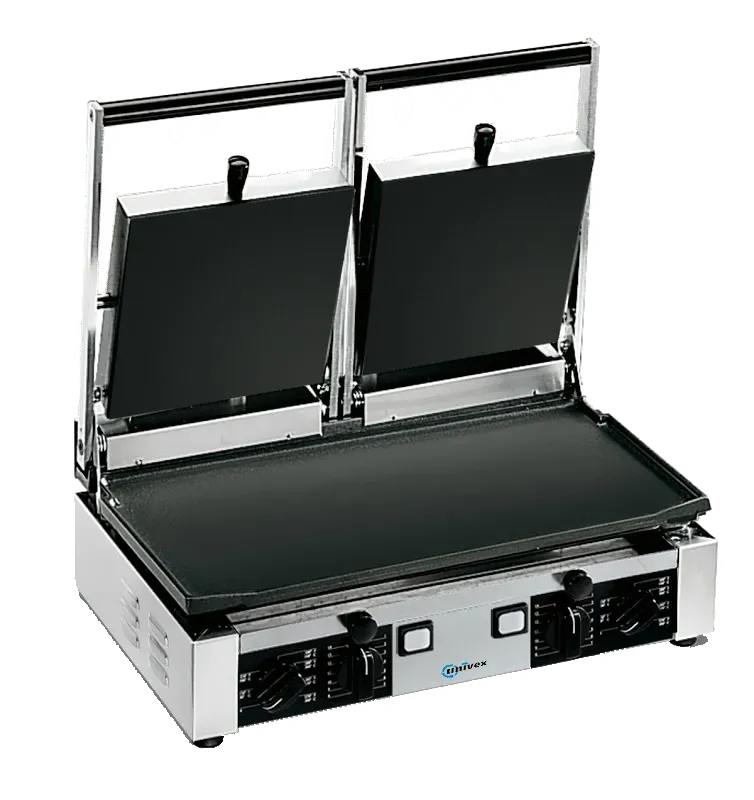 Upgrade Your Kitchen Operations with the Univex PPRess2RF Panini Press. This double cast iron ribbed bottom flat top panini press is a game-changer for commercial restaurants. With its durable construction and efficient design, it allows you to create perfectly grilled paninis, sandwiches, and more, all while maximizing productivity. The Univex PPRess2RF is packed with features that make it ideal for busy restaurant kitchens. Its ribbed bottom ensures even heat distribution, resulting in consistent cooking every time. The flat top allows for versatile cooking options, from toasting bread to grilling vegetables. Upgrade your kitchen with the Univex PPRess2RF Panini Press and experience the difference it can make in your restaurant's efficiency and culinary creations.