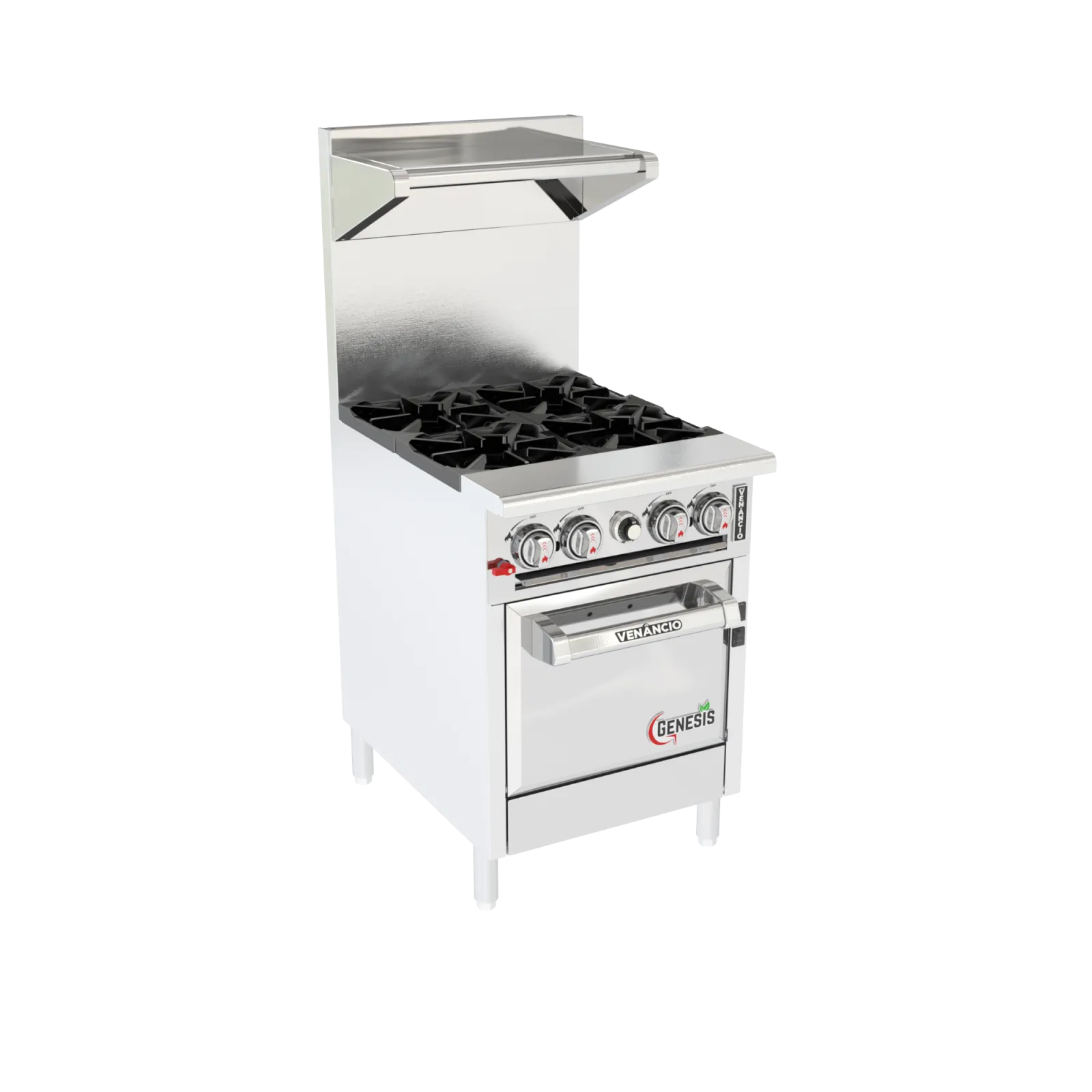 Genesis Series Restaurant Range built to deliver superior performance, durability, and efficiency for demanding commercial environments. This model features key enhancements such as gas and comes equipped with additional advantages including 24"w, (4) open non-clog burners, removable cast iron grates. Designed with operators in mind, it offers dependable daily operation, easy maintenance, and optimized workflow support. From construction quality to performance-driven engineering, this unit provides the capability and reliability professionals expect.