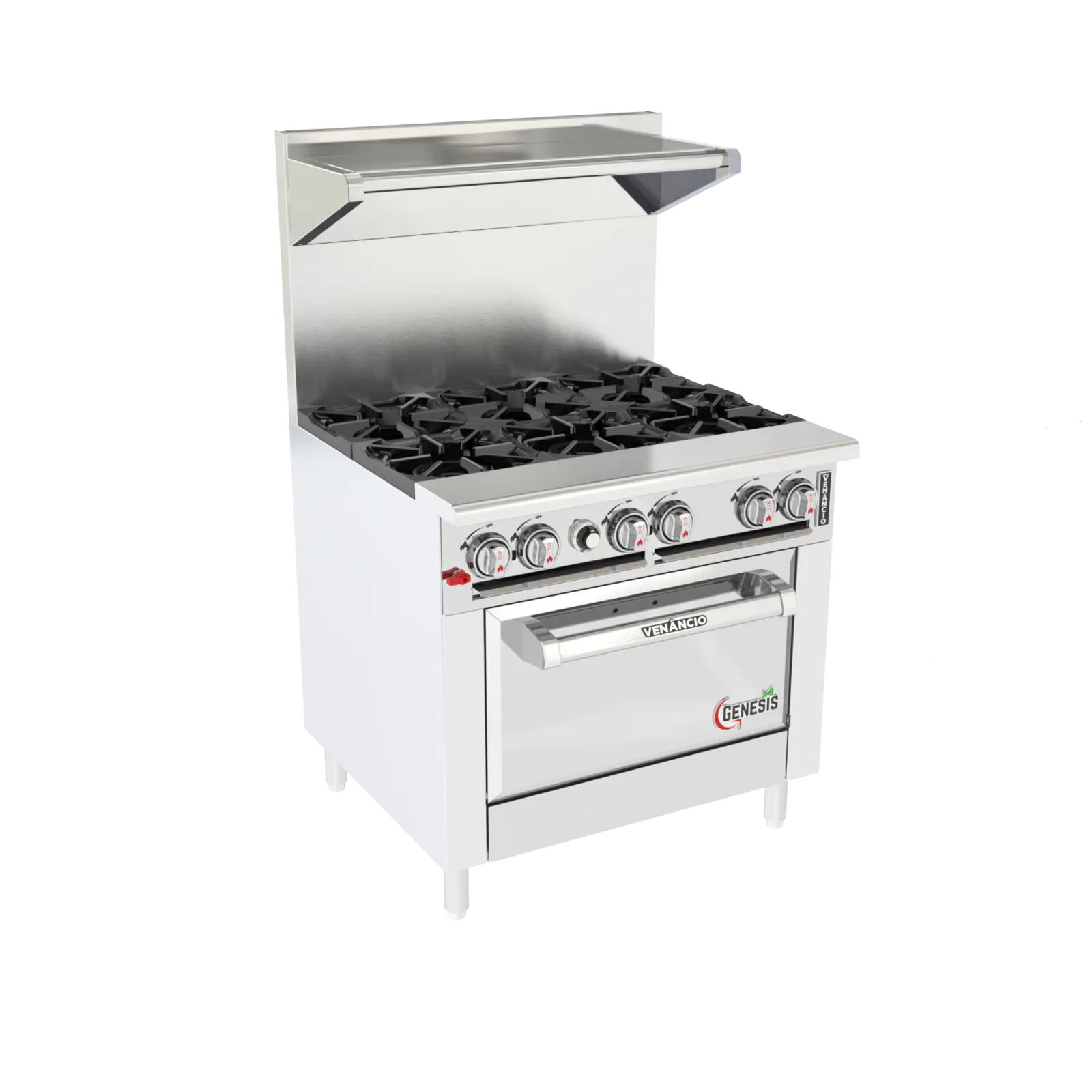Genesis Series Restaurant Range built to deliver superior performance, durability, and efficiency for demanding commercial environments. This model features key enhancements such as gas and comes equipped with additional advantages including 36"w, (6) non-clog self-cleaning burners, removable cast iron grates. Designed with operators in mind, it offers dependable daily operation, easy maintenance, and optimized workflow support. From construction quality to performance-driven engineering, this unit provides the capability and reliability professionals expect.