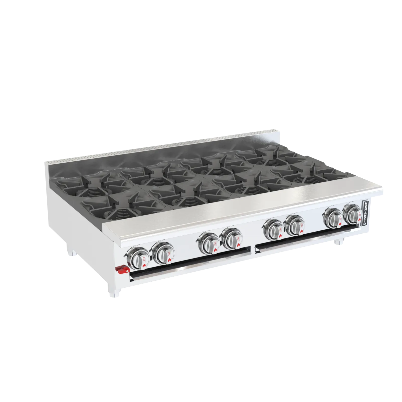 Genesis Series Hotplate built to deliver superior performance, durability, and efficiency for demanding commercial environments. This model features key enhancements such as gas and comes equipped with additional advantages including countertop, 48"w, (8) two-piece heavy duty cast iron burners. Designed with operators in mind, it offers dependable daily operation, easy maintenance, and optimized workflow support. From construction quality to performance-driven engineering, this unit provides the capability and reliability professionals expect.