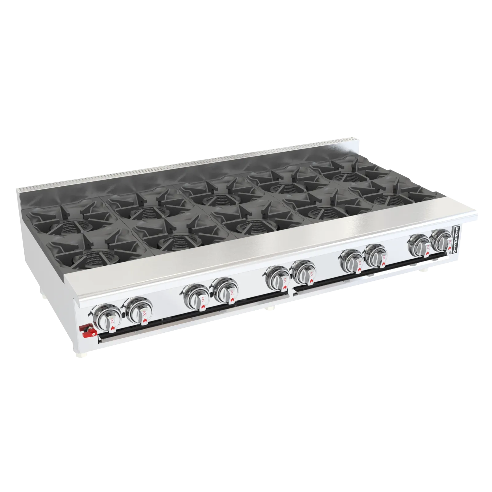 Genesis Series Hotplate built to deliver superior performance, durability, and efficiency for demanding commercial environments. This model features key enhancements such as gas and comes equipped with additional advantages including countertop, 60"w, (10) two-piece heavy duty cast iron burners. Designed with operators in mind, it offers dependable daily operation, easy maintenance, and optimized workflow support. From construction quality to performance-driven engineering, this unit provides the capability and reliability professionals expect.