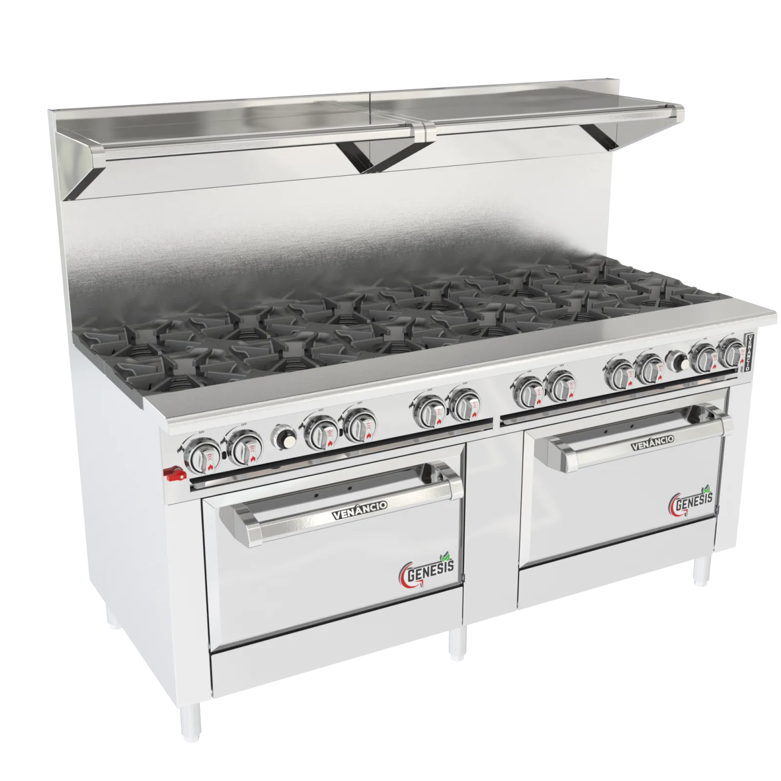 Genesis Series Restaurant Range built to deliver superior performance, durability, and efficiency for demanding commercial environments. This model features key enhancements such as gas and comes equipped with additional advantages including 72"w, (12) non-clog self-cleaning burners, removable cast iron grates. Designed with operators in mind, it offers dependable daily operation, easy maintenance, and optimized workflow support. From construction quality to performance-driven engineering, this unit provides the capability and reliability professionals expect.