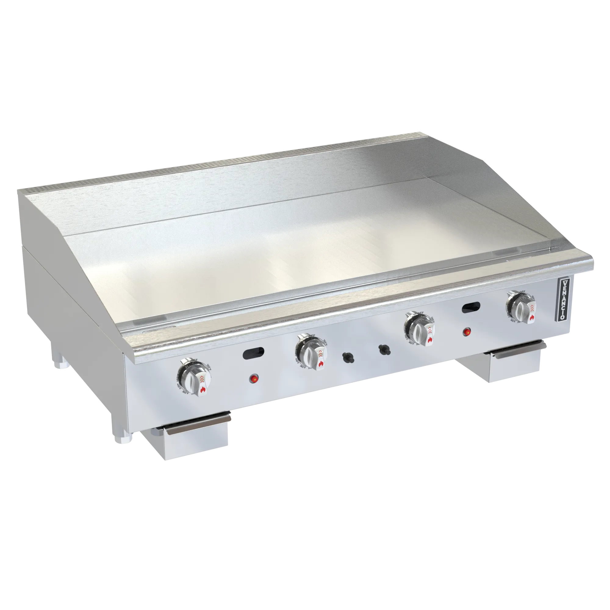 Griddle built to deliver superior performance, durability, and efficiency for demanding commercial environments. This model features key enhancements such as gas and comes equipped with additional advantages including countertop, 48"w x 24"d cooking surface, 1" thick smooth polished steel plate. Designed with operators in mind, it offers dependable daily operation, easy maintenance, and optimized workflow support. From construction quality to performance-driven engineering, this unit provides the capability and reliability professionals expect.